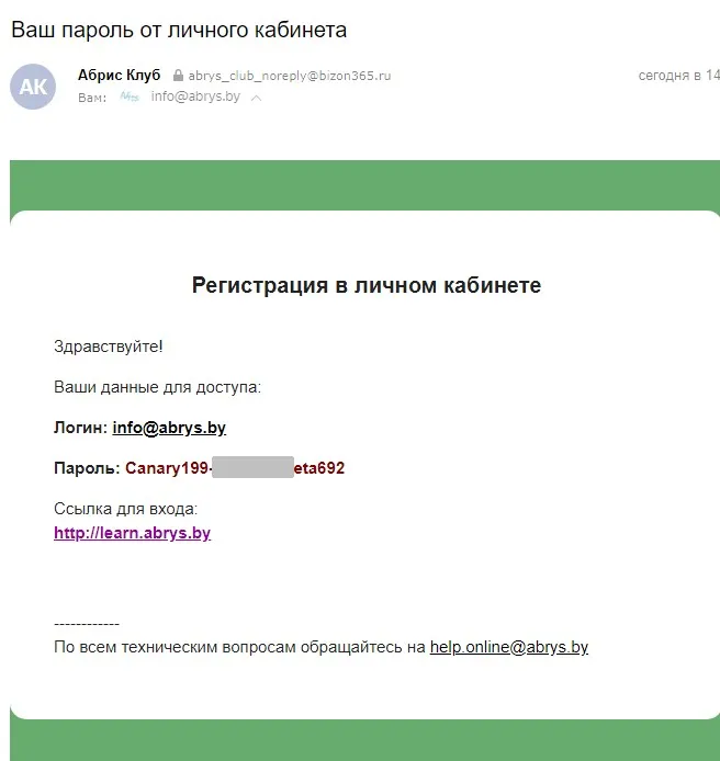 Перейдите по ссылке https://learn.abrys.by/ и авторизуйтесь с полученными данными.